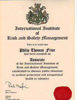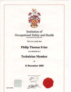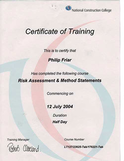 Below you will find our Safety Advisor's certificates to view. These can be inspected in our offices.